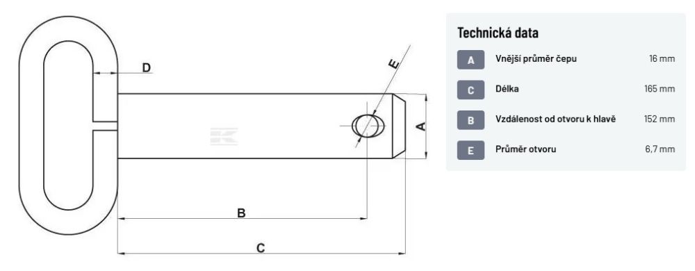 Čep s madlem 16 x 165/152 - černě lakováno (otvor 6,7 mm)