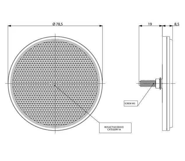 Červená kulatá odrazka 78 x 8,5 x 5 mm