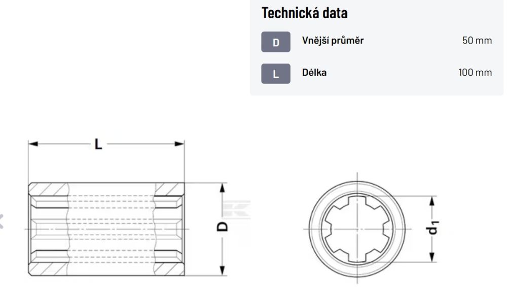 Drážkované profilové pouzdro 1 3/8 Z6, L=100 mm