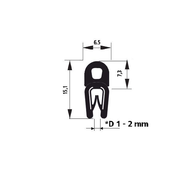 Pryžový profil EPDM A1 107 - 6.5 x 7.3 x 15.1 mm (plech 1-2mm)