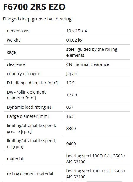 EZO F6700-2RS - 10x15/16,5x4 Jednořadé kuličkové ložisko s osazením