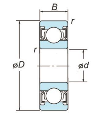 Ložisko má vnitřní průměr d=6 mm, vnější rozměr D=22 mm a šířku B=7 mm.