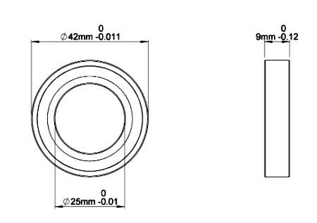 61905-2RS je standardní jednořadé kuličkové ložisko s oboustranným pryžovým těsněním, s rozměry 25x42x9 mm.