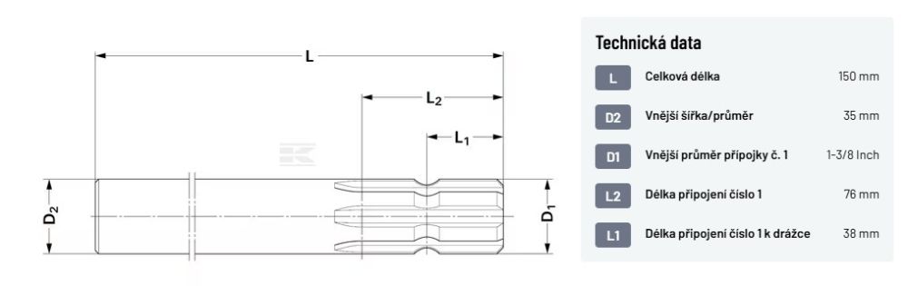Jednostranně drážkovaná hřídel 1 3/8" Z6, 150 mm (max 30kW)