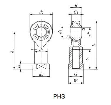 Kloubové oko PHS 16 je standardní typ oka s otvorem 16 mm, s vniřtřním pravým závitem M16x2. Má kluzné uložení ocel / bronz. Dodává se včetně maznice.