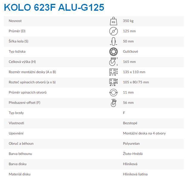 Kolo otočné s brzdou 623F ALU-G125