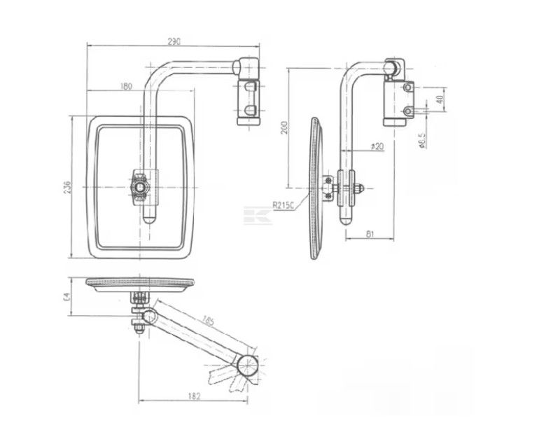 Konvexní zrcátko s držákem pravé, 235 x 180 x 170 mm
