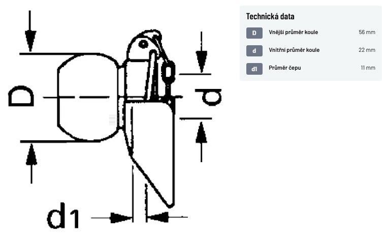 Koule pro spodní rameno s pánví kat. 2/1, O22/56 - kolík 11 mm (kalená ocel)