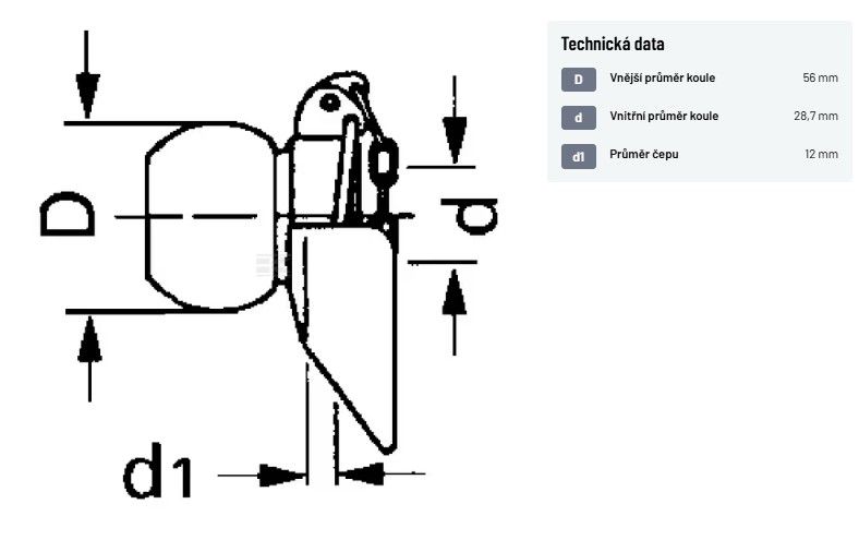 Koule pro spodní rameno s pánví kat. 2/2, O28,7/56 - kolík 12 mm (kalená ocel)