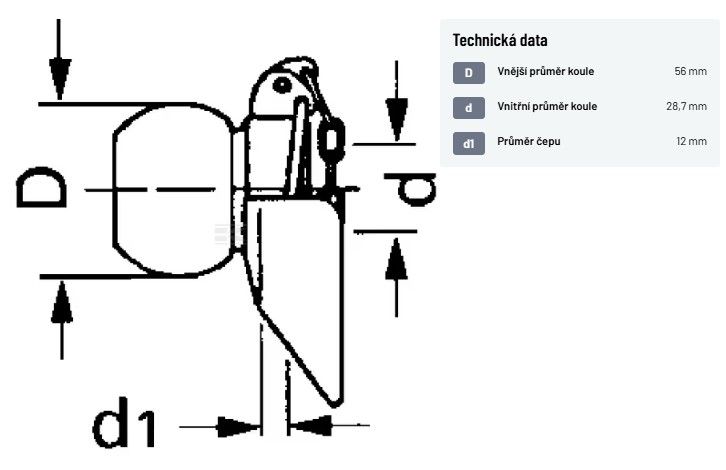 Koule pro spodní rameno s pánví kat. 2/2, O28,7/56 - kolík 12 mm (mangan-chromová ocel)