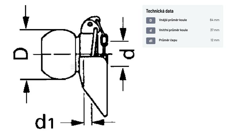 Koule pro spodní rameno s pánví kat. 3/3, O37/64 - kolík 12 mm (kalená ocel)