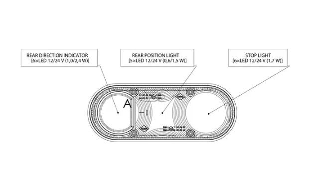 Levé zadní LED světlo 205x53,6x80 mm, 12/24 V