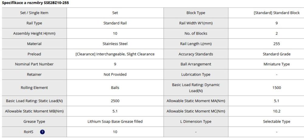 MISUMI SSE2BZ10-255 Lineární jednotka