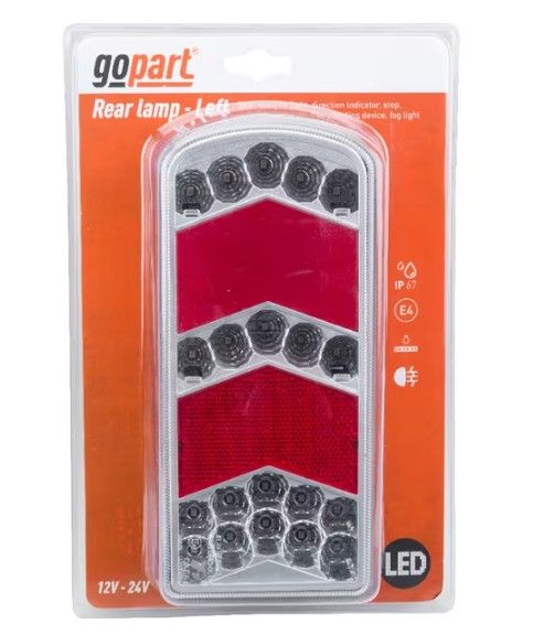 Multifunkční levé zadní LED světlo 228x40x106 mm, 12/24 V