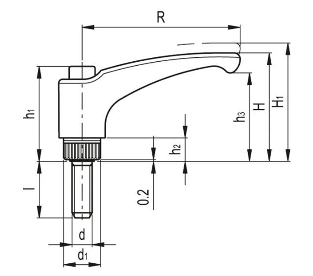 Nastavitelná upínací páka ELESA+GANTER ERX.63 p-M8 x 40 - černá