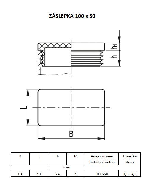 Obdélníková záslepka ELESA+GANTER 50 x 100 x 1.5 - 4.5 mm, PE, černá