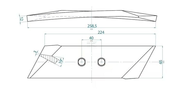 Oboustranná výměnná špička pravá 65x230x12 mm se 2 otvory 13 mm