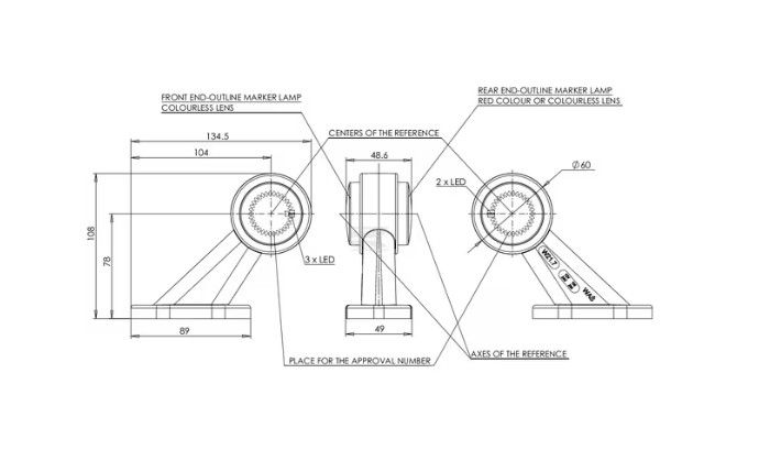 Obrysové pravé LED světlo 108 x 134,5 x 48,6 mm (12/24 V)