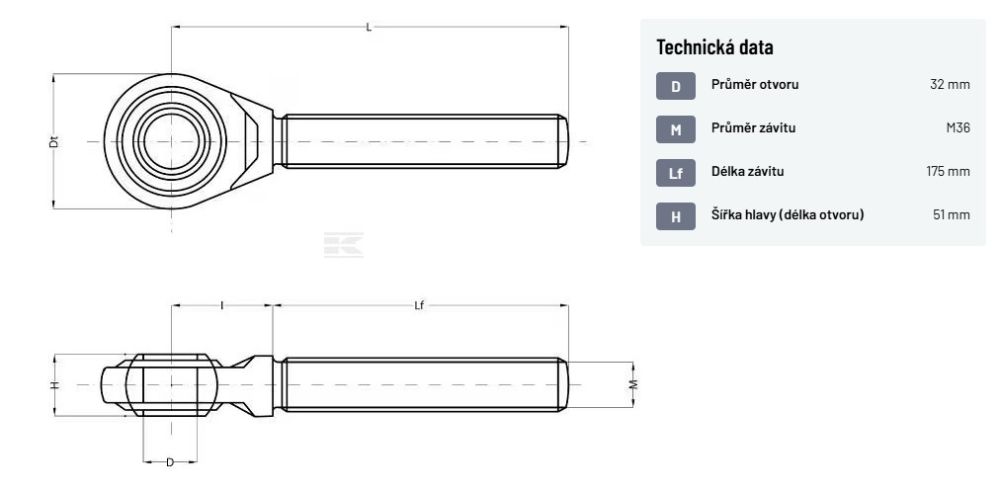 Oko s levým závitem M36x3 Kat. 3 (32 mm)