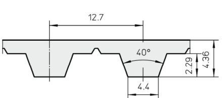 Ozubený řemen palcové rozměrové řady s lichoběžníkovým profilem zubů o rozteči 1/2" (12.7 mm), délce 160" a šířce 1".