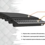Tvoří jej neoprenová směs, tažný kord ze skelných vláken a otěruvzdorný nylonový povlak na zubech.