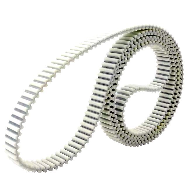 Polyuretanový ozubený řemen s metrickým lichoběžníkovým ozubením profilu T10 po obou stranách.