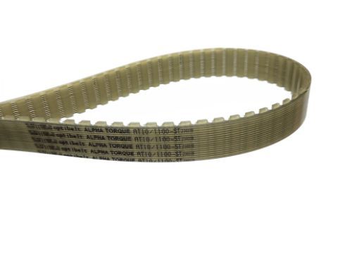 Profil AT10 má trapézový (lichoběžníkový) tvar zubů s roztečí 10 mm. Oproti běžnějšímu typu T10 má profil AT robustnější, širší zuby na úkor zubové mezery, takže na srovnatelných pohonech dokáže přenášet relativně větší zatížení a krouticí momenty. Řemeny AT dosahují i vyšší přesnosti a delší životnosti, což je předurčuje k instalaci na náročnější strojní aplikace.