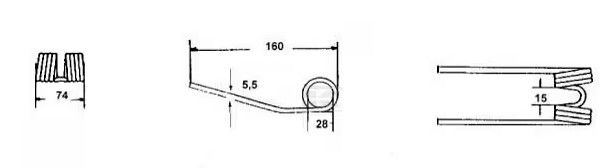 Pero sběrače 5,5 x 74 x 160 mm s cívkou 28 mm