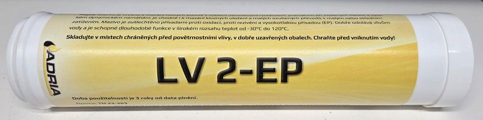 Plastické mazivo LV 2 EP Je určeno zejména k mazání valivých ložisek, pracujících při zvýšených tlacích (EP = Extended Pressure) a vysokém dynamickém namáhání, Je vhodné i k mazání kluzných uložení a malých ozubených převodů s malým nebo středním zatížením a jiných mazaných míst. Je schopné dlouhodobé funkce v širokém rozsahu teplot. S výhodou se používá k mazání ložisek s vyššími obvodovými rychlostmi. Používá se jako univerzální mazivo pro strojírenské či jiné provozy zejména tehdy, převládá-li požadavek na schopnost mazat vysoce namáhaná a dynamicky zatěžovaná uložení.