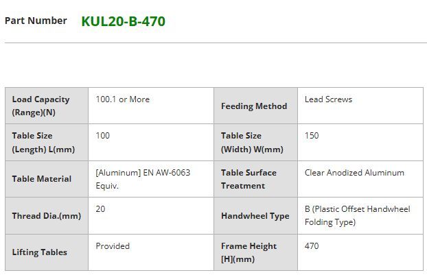 Polohovací jednotka MISUMI KUL20-B-470