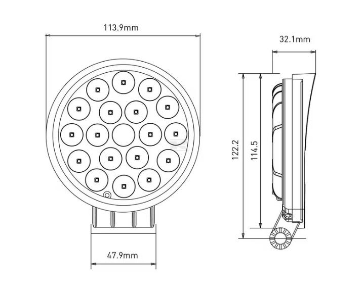 Pracovní LED světlo 36 W, 2850 lm, kulaté, 10/30 V, O 113,9 mm, širokoúhlé 18 LED
