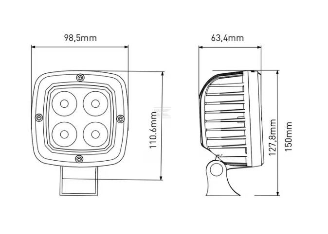 Pracovní LED světlo 40 W 98,5x63,4x98,5 mm 4000 lm, čtvercové, 10/30 V širokoúhlé 4 LED