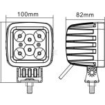 Pracovní LED světlo 42 W 100x82x128 mm 3780 lm, čtvercové, 10/30 V bodový paprsek 6 LED