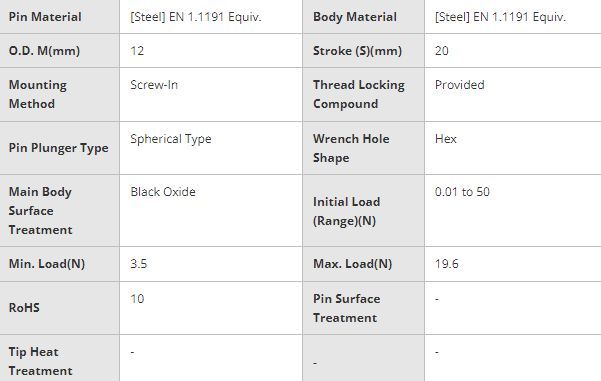 Pružinový píst MISUMI PJL12-20