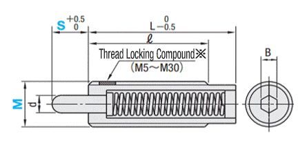 Pružinový pístek Misumi PJS8-5 je standardní díl používaný v mechanických sestavách pro zajištění, polohování nebo aretaci součástí. Pístek tvoří ocelové válcové tělo s vnějším závitem, ve kterém se pohybuje vnitřní pístek, mechanicky ovládaný tlačnou pružinkou. Pístek PJS8-5 má průměr těla M=8 mm a zdvih pístku S=5 mm.