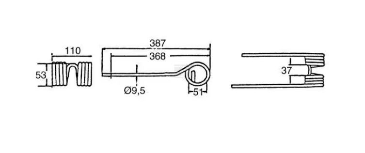 Pružné pravotočivé pero 9,5 x 96 x 387 mm černé s cívkou 51 mm (Kuhn)