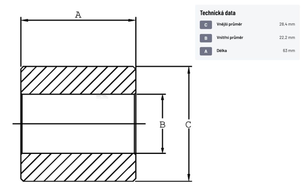 Redukční pouzdro třetího bodu, 22,4/28,4-63 mm