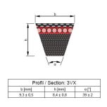 3VX 900 optibelt SUPER XE-POWER je klínový řemen podle amerického rozměrového standardu, normy RMA, s rozměry odvozených z palcových hodnot. Vnější obvod řemenu je 90", odpovídá délce 2286 mm. Řemen je z hlediska profilu plně zaměnitelný s řemenem evropské řady XPZ odpovídající délky a je možné jej též instalovat na řemenice SPZ. Jiné, používané označení těchto řemenů může být rovněž 9NX.