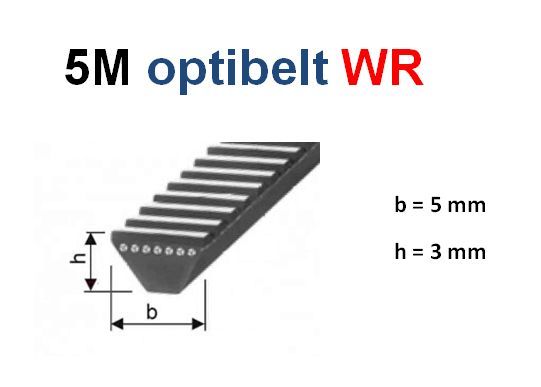 5Mx1150 La PUR optibelt WR je speciální polyuretanový klínový řemen Optibelt, který má oproti standardním klínovým řemenům větší úhel klínu - 60°. Horní šířka profilu je 5 mm, výška 3 mm, vnější obvod řemenu je 1150 mm.