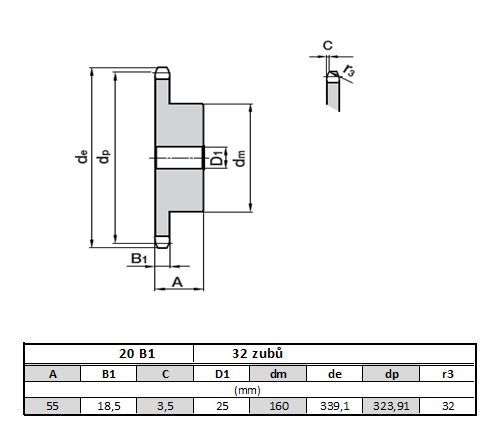 Řetězové kolo 20 B1 - 32 zubů - s nábojem