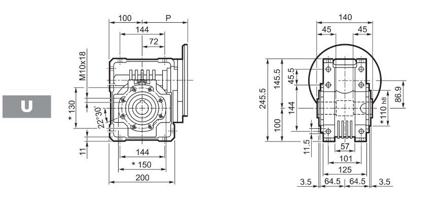 Pravoúhlá převodovka se šnekovým soukolím typové řady W a velikosti 110.
