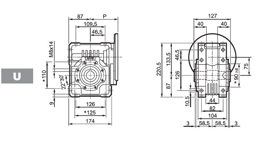 Šneková převodovka BONFIGLIOLI W 75 U D30 40 P90 B14 B3 i=40