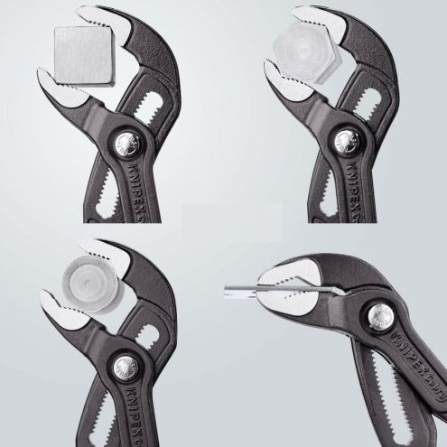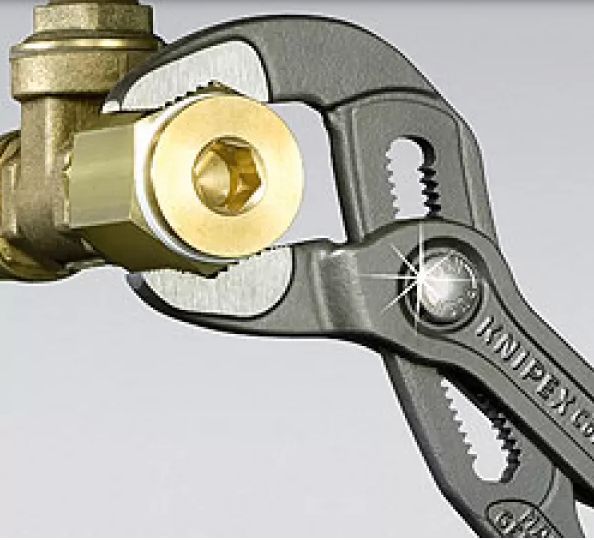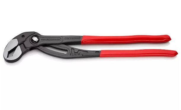Stavitelné kleště KNIPEX Cobra® - XL-400 mm nabízí výkonnost a komfort kleští na vodní čerpadla při jejich nižší hmotnosti a větší úchopové kapacitě. Kleštěmi Cobra® XL lze např. uchopit až 2“ šroubení, přičemž kleště váží o 50 % méně než 2“ trubkové kleště, které mají navíc mnohem nižší úchopovou kapacitu.