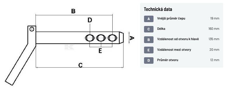 Tažný čep O19 x 160/135 mm - pozink. (3 otvory 12 mm)