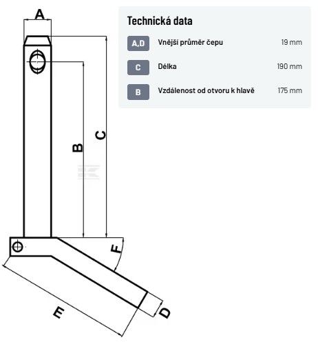 Tažný čep 19 x 190/175 mm - pozink. (otvor 12 mm)