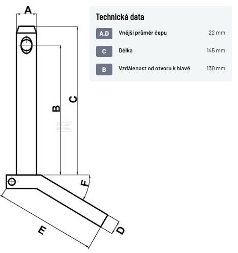 Tažný čep O22 x 145/130 mm - pozink. (otvor 12 mm)