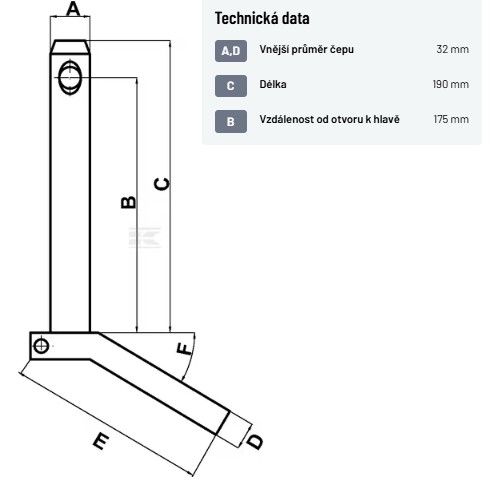 Tažný čep O32 x 190/175 mm - pozink. (otvor 12 mm)