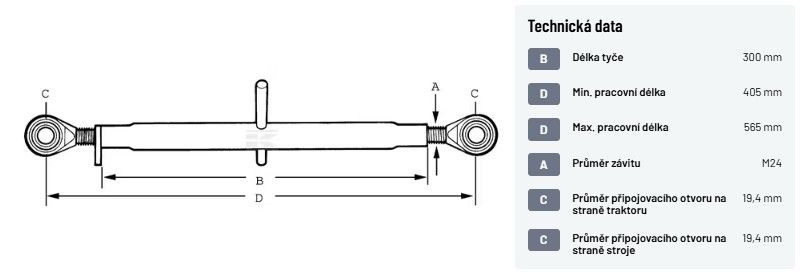 Třetí bod oko-oko kat. 1/1, délka 300 mm, M24, O připojení 19,4 mm
