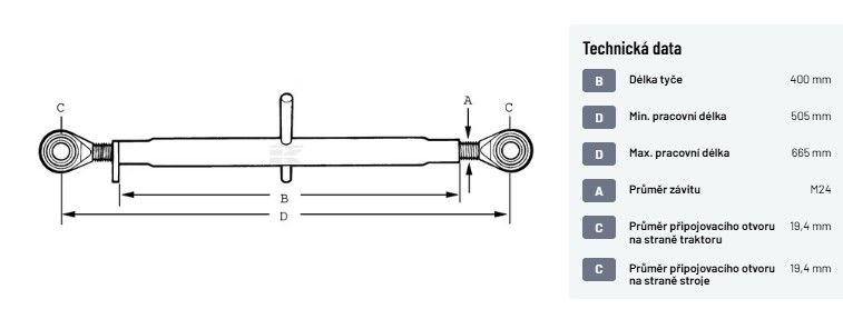 Třetí bod oko-oko kat. 1/1, délka 400 mm, M24, O připojení 19,4 mm