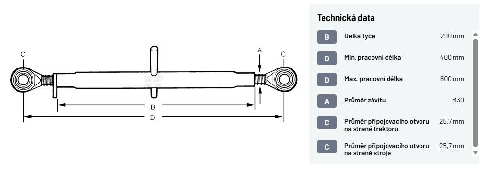 Třetí bod oko-oko kat. 2/2, délka 290 mm, M30, připojení 25,7 mm